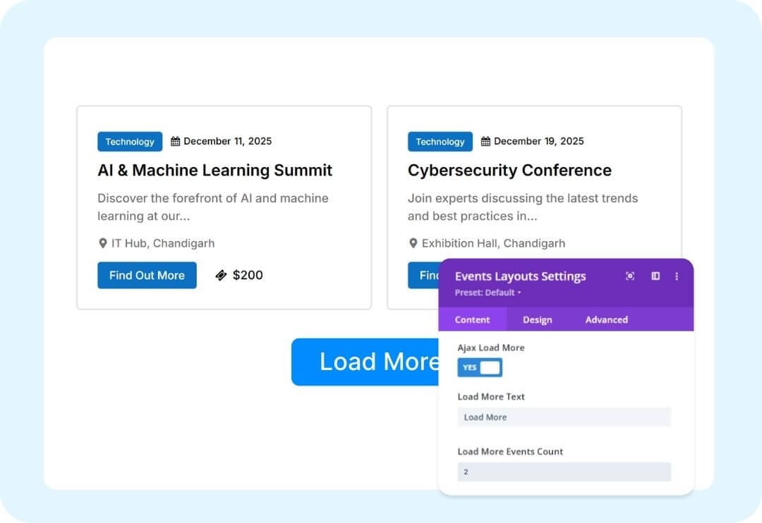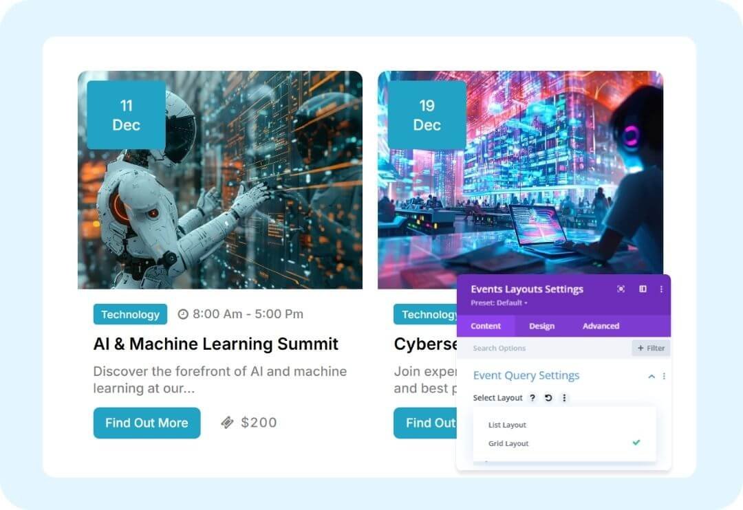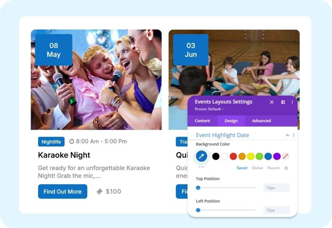 Display events in a visually appealing way using different layouts to suit your design Choose from: